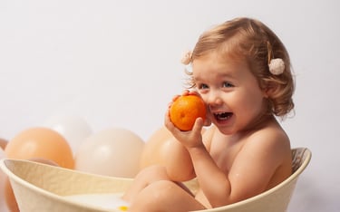 Quand Maman décide de fêter les 2 ans de Constance, elle décide de faire les choses en grand. Et c'est avec plaisir que je la suis dans cette folle aventure. Quoi de mieux qu'un gâteau d'anniversaire pour démarrer la séance? Danses, rigolade et un bain de lait plus tard, je suis émue et heureuse car Constance s'en rappellera toute sa vie.